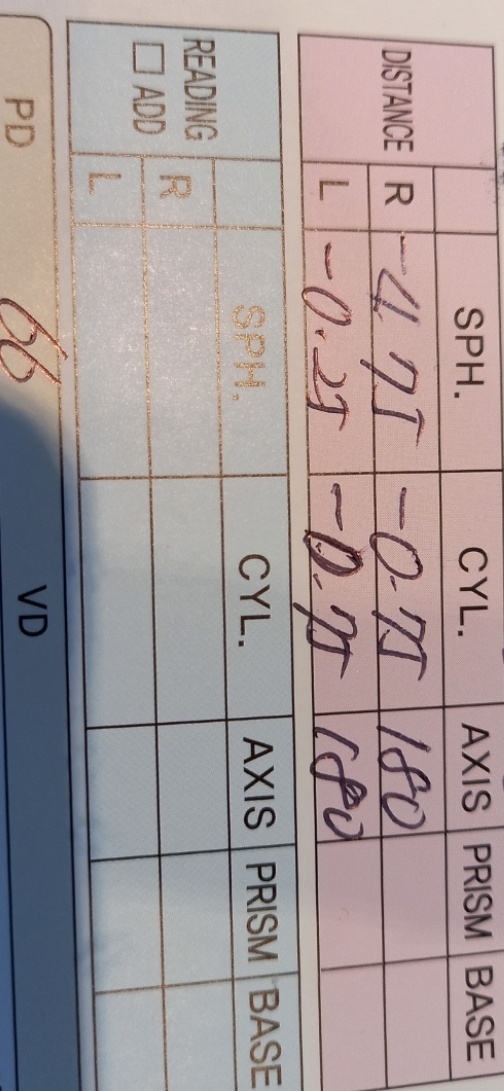 우안) -4.75 sph -0.75 cyl 180
