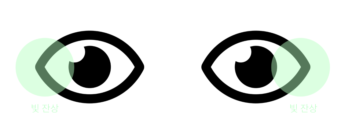 빛 잔상이 남습니다. 빛 잔상은 대게 5분 내외로 사라집니다.