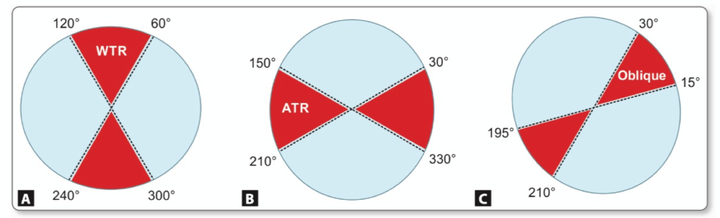 ATR 도난시: 굴절력이 가장 큰 자오선이 180° ± 30° 범위에 있을 때