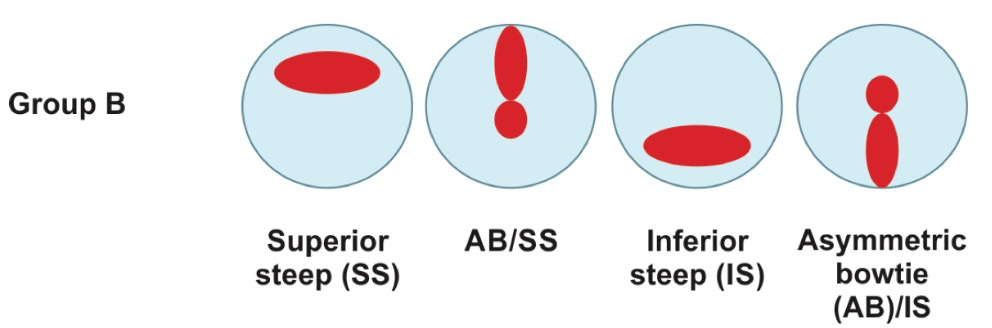 이렇게 대칭적인 모양을 보이는 것들을 group A 패턴으로 묶어 보통 정상 각막으로 간주합니다.