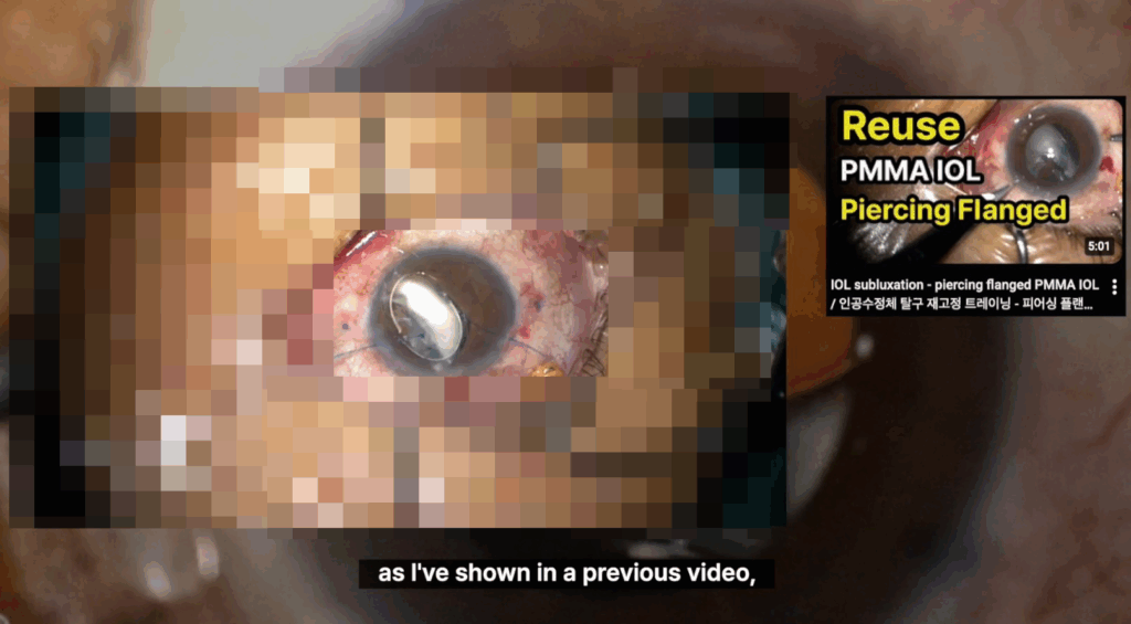 오래전에 백내장 수술을 받은 분으로, single-piece PMMA 인공수정체가 삽입되어 있었습니다.