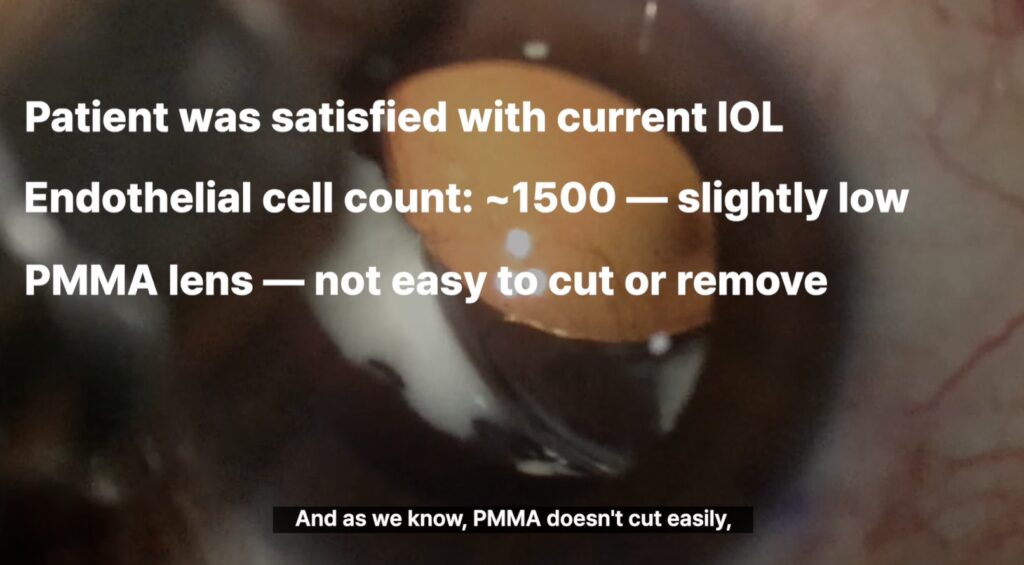 다만 각막내피세포 수가 1500대였고, PMMA 렌즈는 절단이 불가능하다는 점에서 신중해야 했습니다.