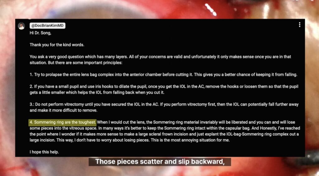 그 역시 Sommering ring이 IOL exchange에서 가장 짜증나는 순간이라고 말했습니다.