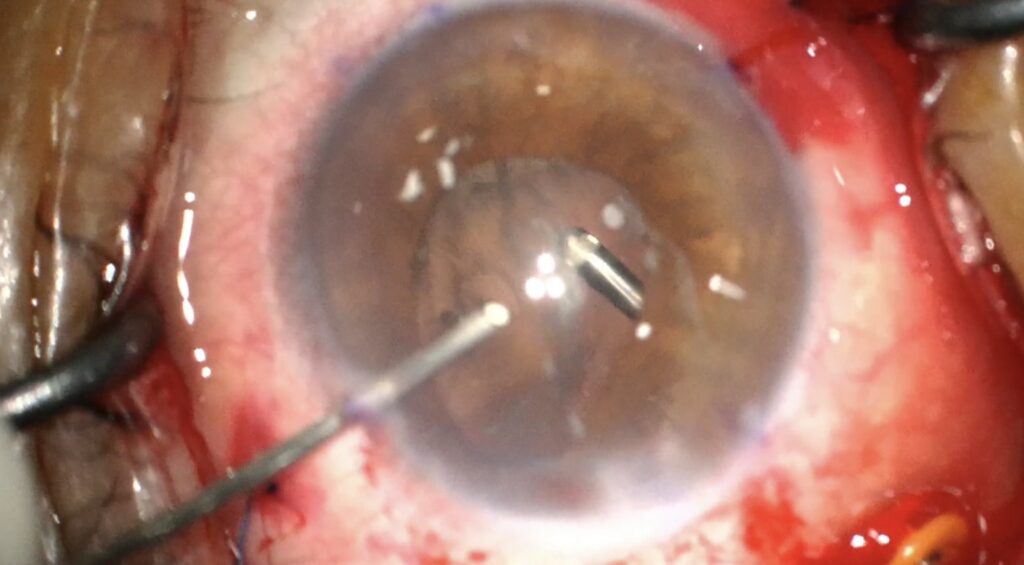 이 단단한 잔여물은 vitrector로 제거가 어렵고, 때로는 phaco로 부수기도 해야 합니다.