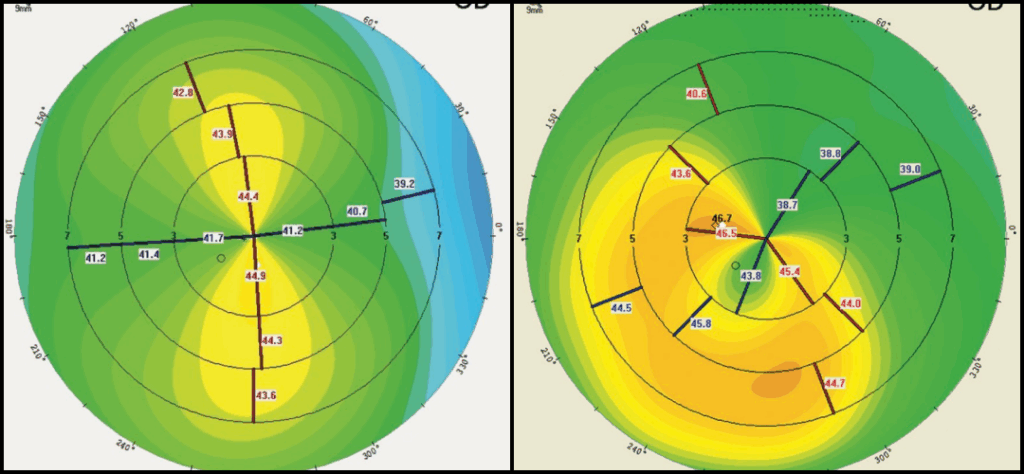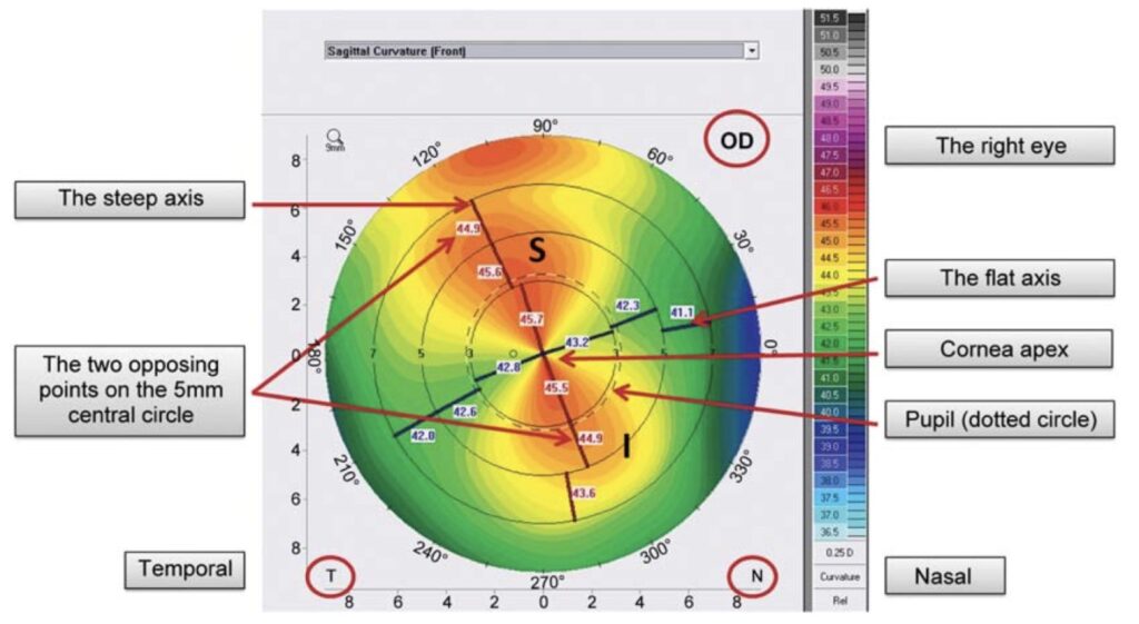 앞서 corneal power map에는 여러 지도가 있다 말씀을 드렸습니다.