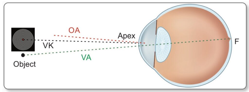 우리 눈의 해부학적 중심과, 실제 볼 때 사용되는 시축은 차이가 있습니다.